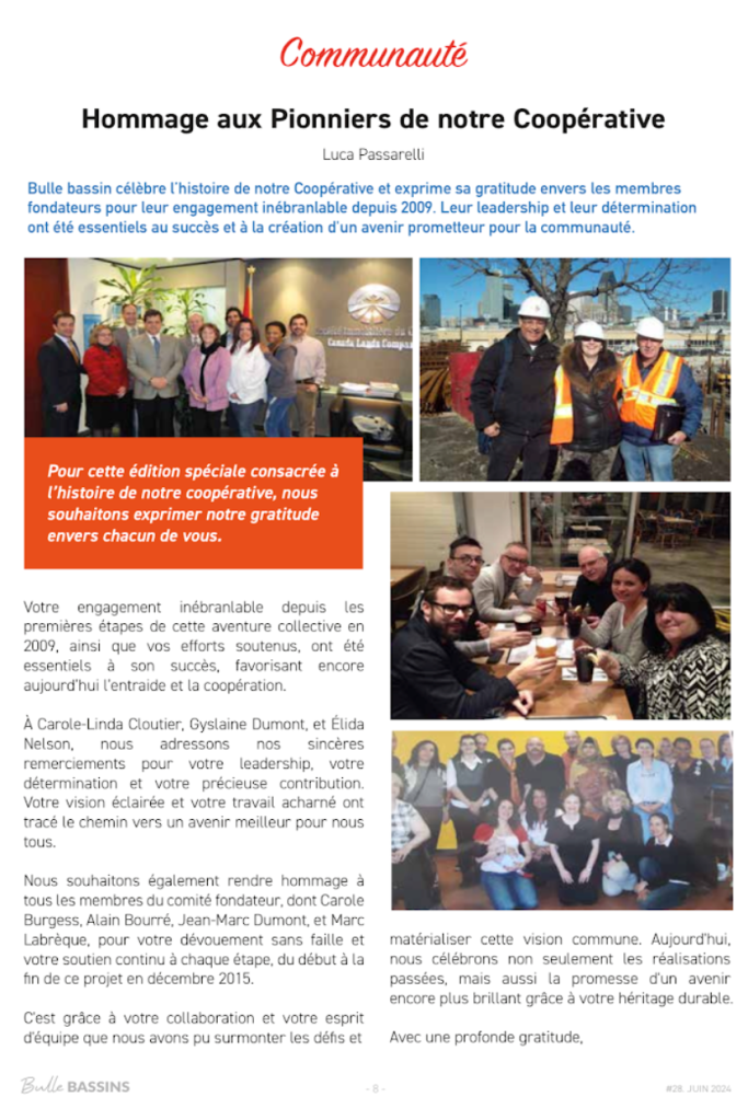 C’est avec une grande fierté que nous célébrons le dixième anniversaire de notre coopérative à Griffintown. Cet anniversaire marque une étape importante dans une histoire collective riche de sens, portée par des valeurs de solidarité, d’entraide et de persévérance. Depuis 2009, les membres fondateurs ont fait preuve d’un engagement inébranlable. Grâce à leur détermination et … Lire la suite 10 ans déjà!